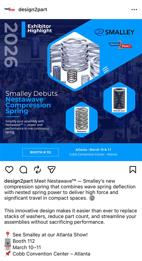 Exhibitor Highlight is a free opportunity to highlight your company’s standout capabilities, technologies, products, and services through Design-2-Part’s pre-show social media marketing.